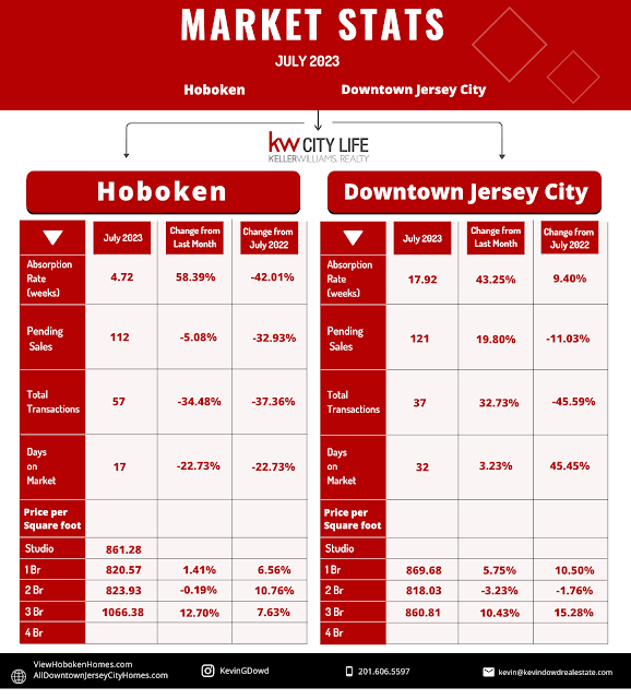 The paces of sales for downtown Jersey City slowed to 17.92 weeks, but don't worry...we're still in seller's market territory.